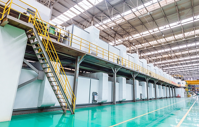 在鋼材卷帶經過表面脫脂、磷化、鐘化處理后,以連續(xù)輥涂的方法在其表面涂覆多層有機涂料,如硅改性聚酯(SMP)、高耐候聚酯(HDP)、氟碳(PVDF)等涂料,從而復合形成新型功能性板材的成套生產設備。生產線由開卷機、縫合機(焊機)、儲料機、脫脂清洗機組、涂機、固化爐、剪切機、收卷機等設備組成。