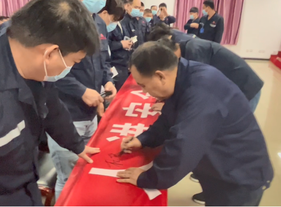 會后,由總經理杜寶新率領參會的各級管理人員進行“安全生產宣誓”,并在“安全生產月”主題橫幅上簽名。